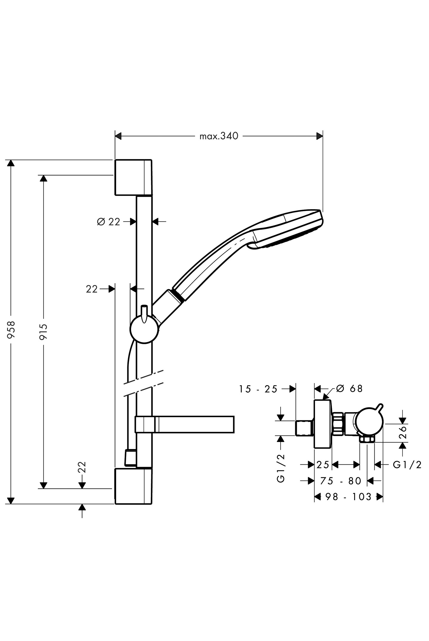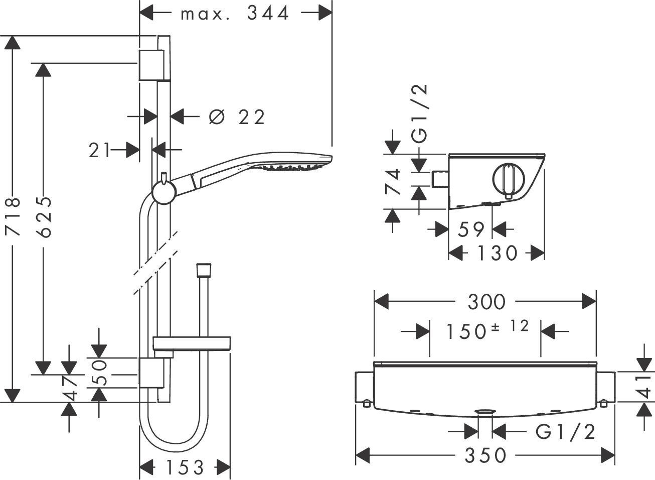 | HG27036400 | Hg ecostat select douchethermostaat met doucheset S 150 65cm wit/chroom | 27036400 |