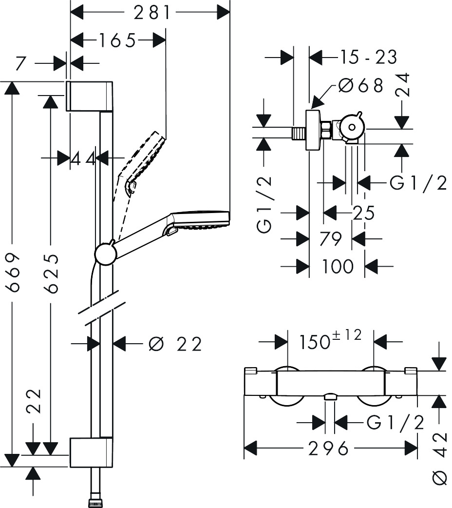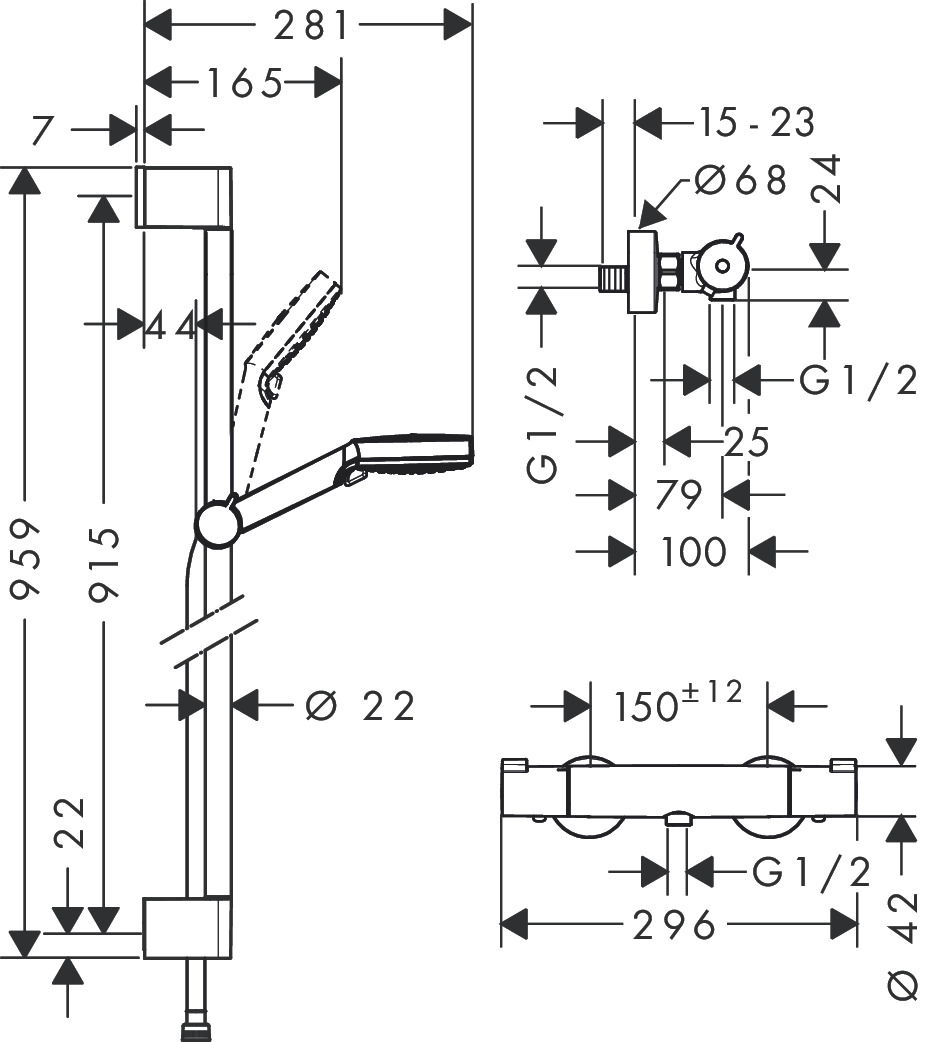 | HG27036000 | Hg ecostat select douchethermostaat met doucheset S 150 65cm chroom | 27036000 |